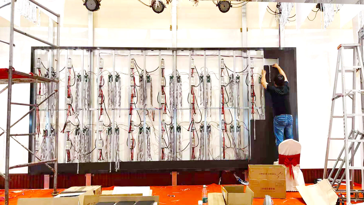 因此酒店的需求增大,更好的酒店环境和服务已经成为酒店竞争的软性指标,晶创博液晶显示大屏可以提供更好的商显解决方案,帮助酒店方提高软实力。广西百色剧场大酒店宴会厅室内P2.5led全彩显示屏采用嵌入式安装结构,和背景墙融合在一起,毫无突兀感,增加了整体美感!
